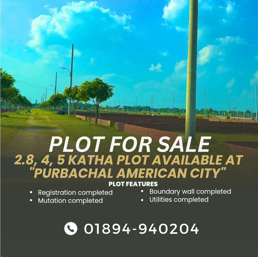 ইউএস-বাংলা অ্যাসেটস লিমিটেডের স্বনামধন্য প্রকল্প, পূর্বাচল আমেরিকান সিটি, নিয়ে এলো নাগরিক জীবনের এক নতুন দিগন্ত। এখানে আপনি পাবেন: * প্লটের ধরন: – আবাসিক প্লট: ২.৮, ৪, ৫, ৬, ও ৭.৫ কাঠা। – বাণিজ্যিক প্লট: ১০, ১৫ ও ২০ কাঠা। – অভ্যন্তরীণ রাস্তা: ২৫ ফুট থেকে ১৪০ ফুট পর্যন্ত প্রশস্ত। – দেশের প্রথম রিক্সা ফ্রি সিটি। * অবস্থান: – কুড়িল ফ্লাইওভার থেকে ১৬ কিমি দূরত্ব। – ঢাকা-সিলেট বাইপাস মহাসড়কের সাথে সংযোগ। – প্রকল্পের পাশে প্রস্তাবিত এশিয়ান হাইওয়ের অবস্থান। পূর্বাচল আমেরিকান সিটিতে এখনই বাড়ি করার উপযোগী ২.৮, ৪, ৫, ৬, ১২, ১৮ কাঠা সেকেন্ডারি প্লট স্বল্প দামে কেনার জন্য যোগাযোগ