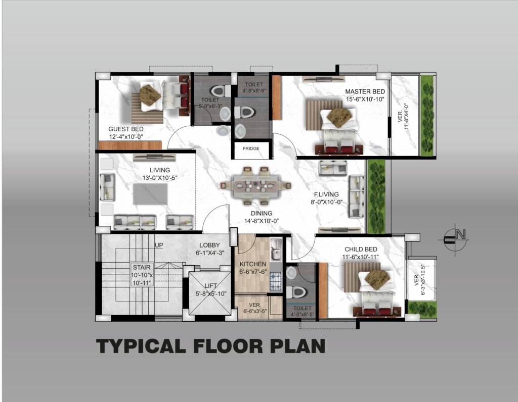 Each 1650 SFT apartment is thoughtfully designed with: